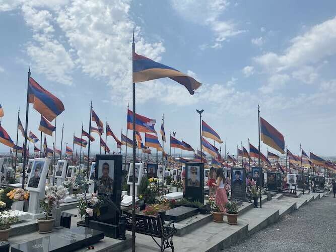 Toutefois, l’Arménie est une terre déchirée qui porte en elle de nombreuses blessures à l’image des failles profondes qui découpent ses paysages. Aujourd’hui, le traumatisme du génocide, qui nous a été rappelé lors d’une visite éprouvante au mémorial des victimes du génocide, est réactivé par la guerre avec l’Azerbaïdjan pour le contrôle du Haut-Karabagh.