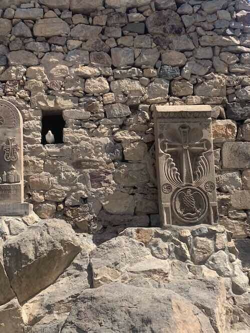 Echmiadzine est aussi le centre de l’Eglise apostolique d’Arménie où réside le Catholicos, son chef spirituel. L’église arménienne est dite « Sainte Apostolique » car selon la tradition, le christianisme a pénétré en Arménie dès le premier siècle grâce à la prédication des apôtres Thaddée et Bartolomé. La religion chrétienne est encore aujourd’hui très prégnante en Arménie. Elle se caractérise par une conception originale des deux natures du Christ qui se résume par la formule suivante : « L’incarnation du Christ est le sacrement de l’homme-Dieu où se rejoignent harmonieusement les deux natures humaine et divine en un caractère unique et à jamais uni ». Le particularisme chrétien arménien s’observe encore par la beauté de sa liturgie, les khatchkars (littéralement « pierres à croix ») qui fleurissent un peu partout ainsi qu’à travers les nombreux monastères qui maillent le territoire. Nous avons eu la chance d’en visiter quelques-uns parmi les plus importants : Haghpat, Marmashen, Khor Virap ou encore Noravank.