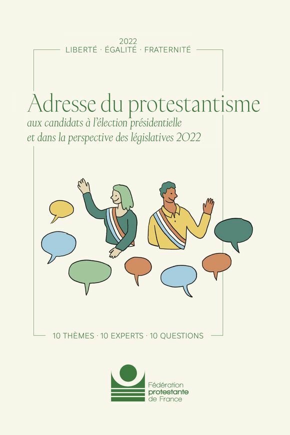Depuis le 2 février et pendant les 10 semaines jusqu’au premier tour de l’élection présidentielle, la Fédération protestante de France (FPF) aborde, tous les mardis en ligne, l’une des 10 thématiques : Laïcité et place des religions ; Autonomie et handicap ; Pauvreté ; Europe et justice sociale ; Écologie et justice climatique ; Égalité femmes-hommes ; Exil et accueil des réfugiés ; Racisme et xénophobie ; Solidarité internationale ; Jeunesse et éducation. L’ordre des thématiques est choisi en fonction de rendez-vous du calendrier et de la complémentarité des thématiques qui se suivent. Par exemple, le mardi 8 mars, journée internationale des droits des femmes a été présentée l’adresse concernant l’égalité femmes-hommes.