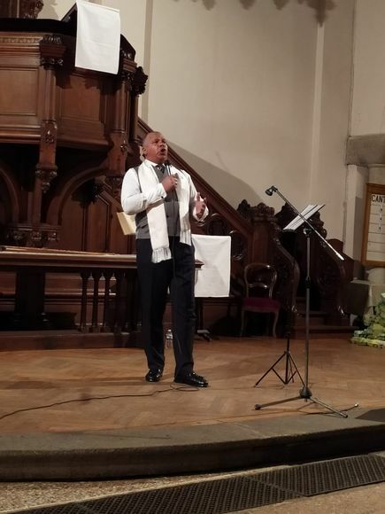 Rabetafika s’avance sur la scène. Il se met à chanter. Haut et bas, aigus et graves sont tenus dans une lutte antagoniste maîtrisée. Une gestuelle ferme et disciplinée montrant la fidélité d’un corps accordé à sa voix, les pieds bien plantés, un ventre arrondi par un air mesuré qui joue avec un larynx tendu/détendu aux tessitures ébouriffantes, un port de tête qui fait résonner des notes vertigineuses. Un récital qui a vibré à la manière d’une Annonce tant attendue et qui semble s’être dévoilée par la voix d’un homme, au clair avec ses attentes joyeuses d’un Dieu d’avenir. Merci au pasteur Rabetafika pour ce moment immobile, tout en pudeur, qui nous a fait toucher des tympans l’indicible.