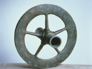 La roue creuse et à rayons est une formidable invention qui allège les chars et favorise la mobilité. Utilisée comme motif, elle symbolise aussi le Soleil sur de nombreux objets de culte ou d’apparat. Roue de Fa, en bronze (Aude, 1100-900 av JC)