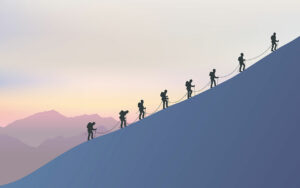 Dans cette cordée d’alpinistes en route vers un sommet indéfini, la corde qui les relie tous est, selon les hommes et les écarts, lâche ou tendue. Mais qu’elle soit en tension ou pas, cette corde nous rappelle que les premières ascensions de presque tous les sommets majeurs (du mont Blanc en 1786 à l’Everest en 1953) furent des œuvres collectives.