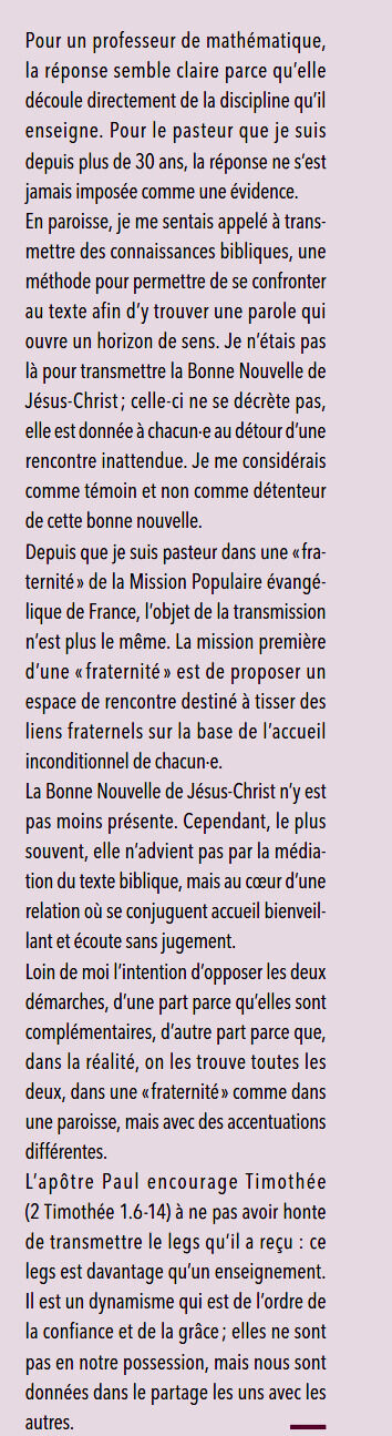 J’aime l’image du corps employée par l’apôtre Paul dans son épître aux Corinthiens (chapitre 12), car elle dit bien l’idée que je me fais de l’unité de l’Église. Non pas fusion mais complémentarité ou, pour le dire d’un autre mot, « communion », selon le grec koinonia. Et si cette image est pertinente à l’intérieur de chacune de nos communautés, a fortiori peut-elle l’être au niveau des différentes Églises.