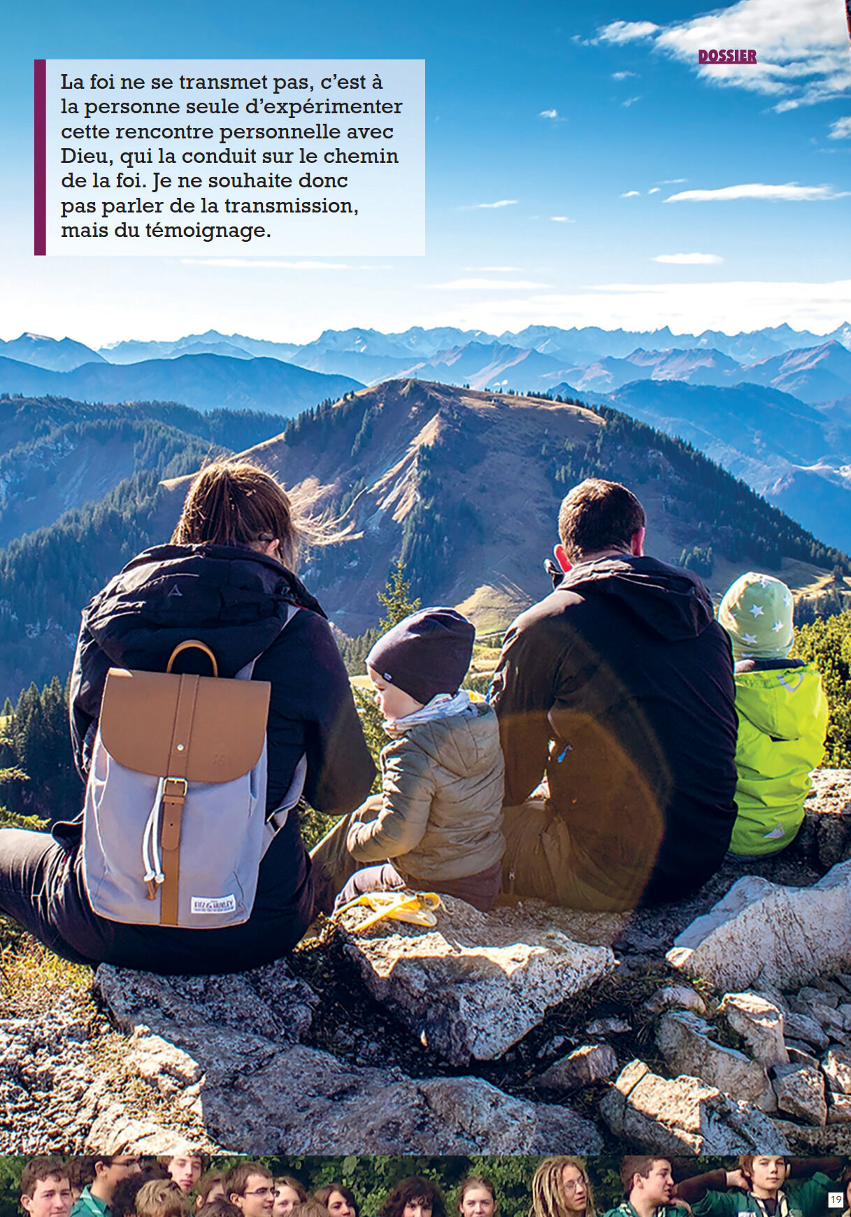 Je ne souhaite donc pas parler de transmission, mais plutôt de témoignage. Et ce témoignage de la foi est à mettre en avant.