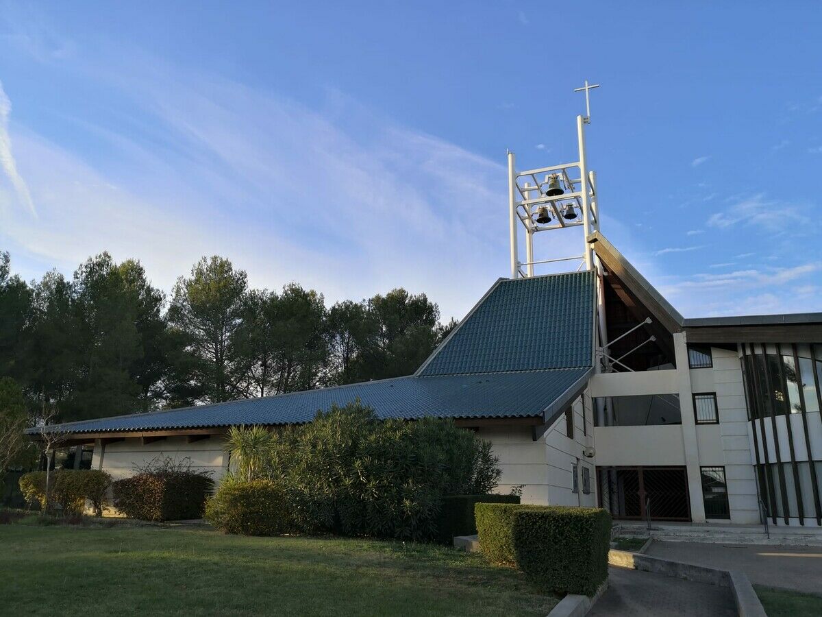 Au-dessus de ce baptistère s’élève un clocher et son histoire si particulière : dans le campanile, il y a trois cloches. La première vient d’un temple protestant, la deuxième vient d’une église catholique et la troisième a été offerte par la mairie. « C’est le seul lieu religieux en France où la cloche d’une mairie est présente », raconte la pasteure.