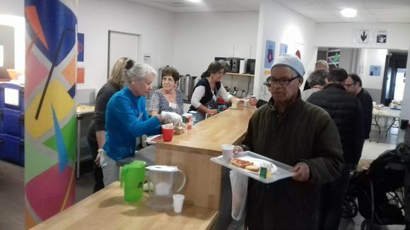 Distribution des repas à Babel café (photo prise avant la pendémie) (© DR)