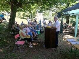 Dans ce début d’été comme chaque année beaucoup sont venus avec leurs petit pliant, d’autres sont assis par terre, pour écouter « LA PAROLE ». Les chants et la musique glissent entre les feuilles vertes des châtaigniers et rebondissent sur l’écorce ancienne des arbres pour s’élever vers le bleu du ciel magnifique en ce beau dimanche.