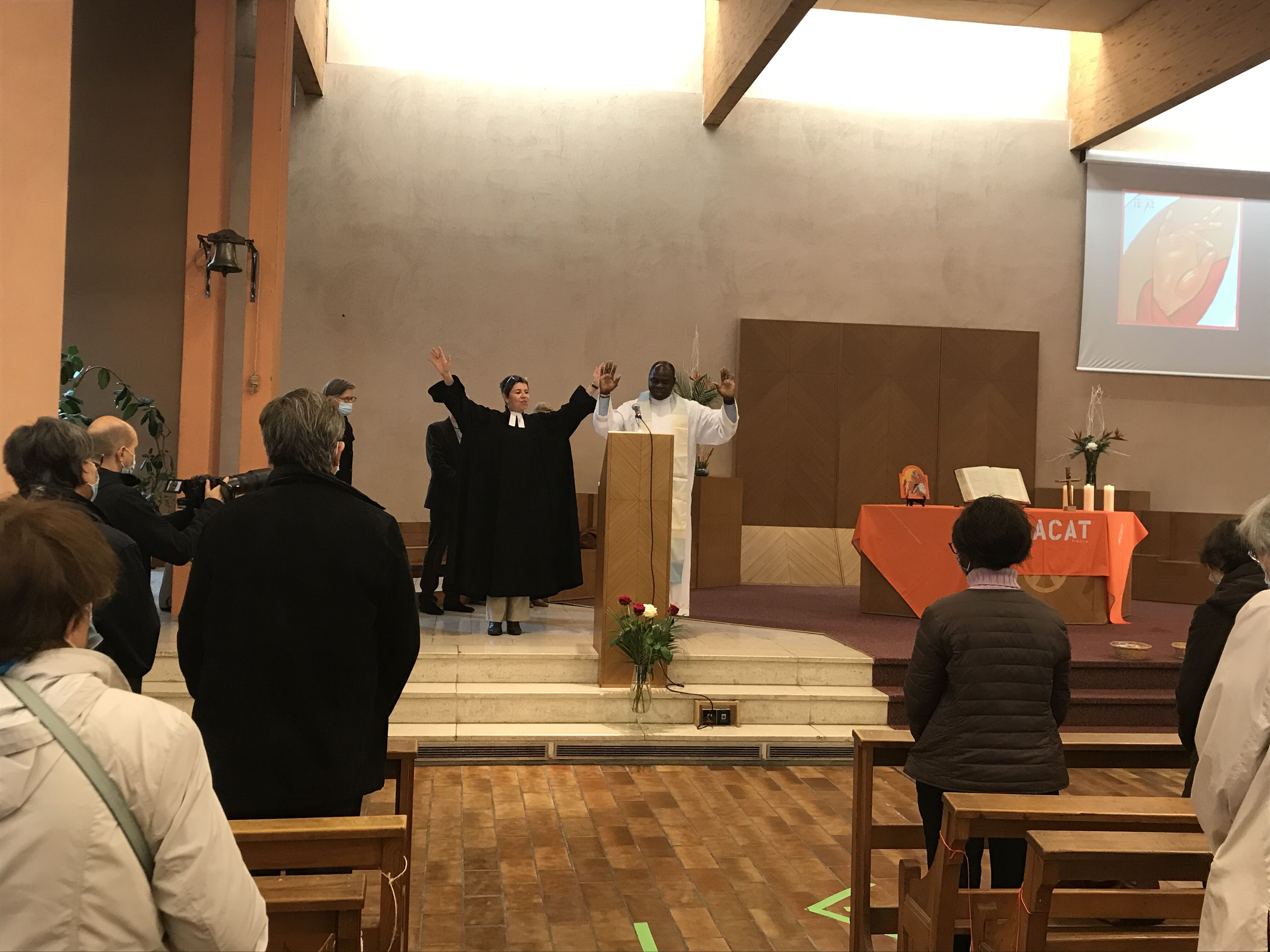 Nous terminons cette célébration avec une bénédiction donnée à deux voix, par Marie Pierre et Père Armand, car « il n’est pas bon pour l’être humain d’être seul ».