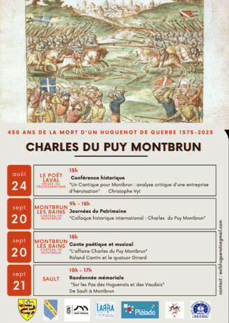 Le premier événement a eu lieu le 25 avril 2025 à La Charce, où Jean-Claude Daumas a donné une conférence sur le siège de la Motte-Chalancon ; une autre sera prononcée par Christophe Vyt le 24 août au musée du Poët-Laval. Le moment phare du projet sera le week-end des 20 et 21 septembre à l’occasion des Journées européennes du Patrimoine, avec un colloque historique international destiné au grand public réunissant à la fois des chercheurs universitaires et des chercheurs locaux, le spectacle de Roland Cantin accompagné du Quatuor Girard et une randonnée mémorielle.