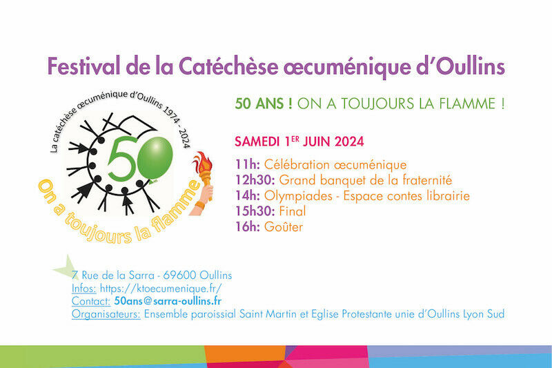 Rendez-vous le 1er juin, à la Sarra à 11 h, pour fêter les 50 ans de la catéchèse œcuménique lors d’une célébration officielle qui sera suivie d’un grand banquet de la fraternité et d’une après midi festive !