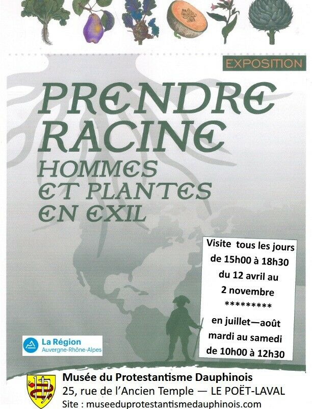 L’exposition « Prendre racine, exil des hommes et des plantes » a été réalisée par l’association Sur les pas des huguenots et des vaudois.