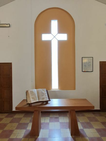 L’intérieur du temple de Bagnols : de la croix surgit la lumière