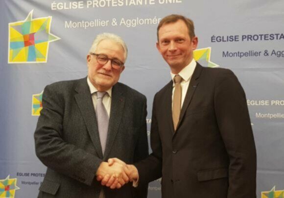 Chems-Eddine Hafiz, recteur de la mosquée de Paris, a dialogué avec le pasteur James Woody (© DR)