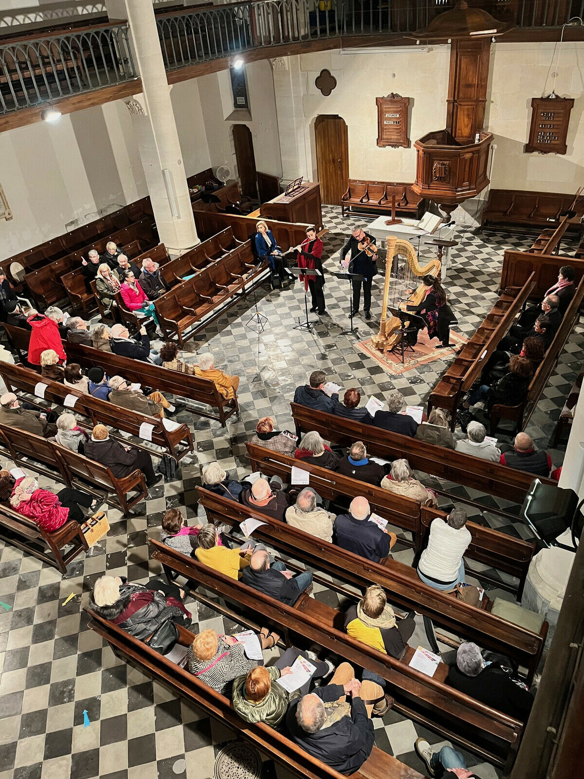 Le culte artistique du dimanche 26 novembre dernier, organisé conjointement par le conseil presbytéral et des membres de l’Église de Sète, et l’association Crescendo France a rassemblé un peu plus d’une centaine de participants, trois fois plus qu’habituellement. Pour ce culte où le Trio Vermeil (harpe, flûte, alto) et une soprane étaient à l’honneur, furent déployés annonces numériques, affiches, flyers, émission sur la radio FM-PLUS, avec les voix de Claire Oberkampf, Crescendo-France et Marie-France Martin, paroissienne.