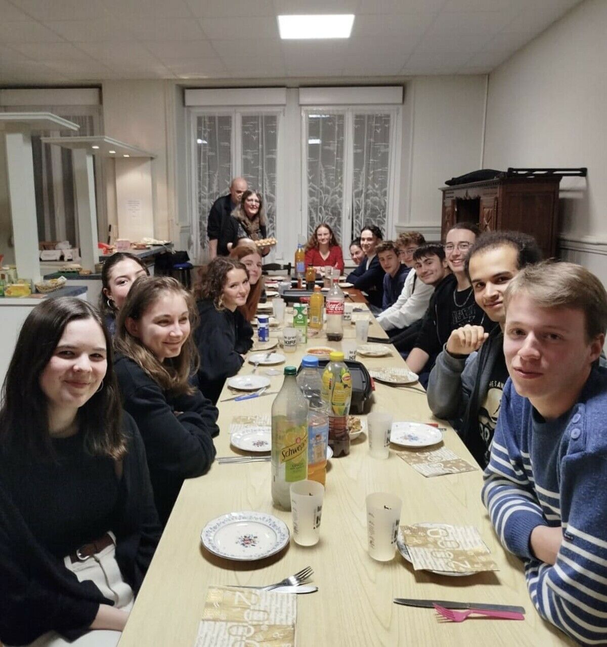 Tout a commencé à la rentrée 2021, avec trois jeunes qui n’avaient pas pu être confirmés au printemps à cause de ce Covid qui a fait bien du tort aux activités paroissiales. Plutôt que de leur imposer une nouvelle année de KT, j’ai proposé des rencontres plus ludiques sous forme de groupe de jeunes, en grappillant çà et là un ou deux membres de fratries qui traînaient encore leurs guêtres dans le coin. Une fois confirmés, ils ont continué à venir, et nous avons alors intégré les nouveaux confirmands… De fil en aiguille, un petit groupe s’est constitué, avec 8-10 jeunes qui venaient manger (et apprendre à faire la vaisselle !) un vendredi soir par mois, emmenant çà et là un copain ou une copine de passage. Déjà, le groupe n’était pas un groupe boroillot-mandubien d’origine : un jeune descendait de Maîche, deux venaient de Montbéliard, un d’Exincourt.