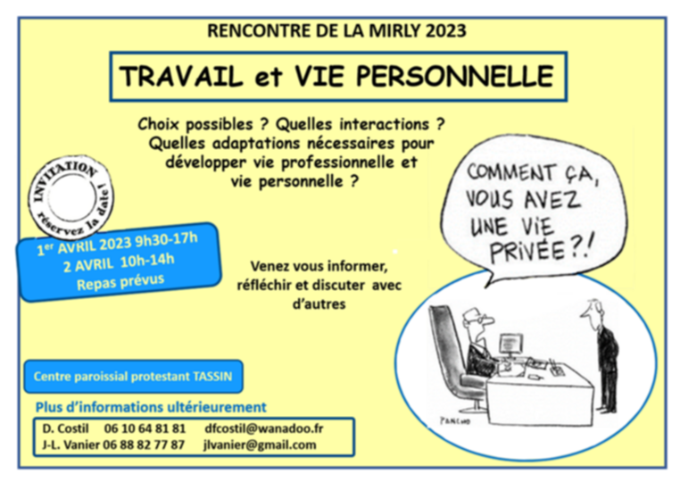 Pour recevoir le dépliant donnant les détails et permettant de s’inscrire, merci de faire parvenir les coordonnées à rencontre.mirly@laposte.net ou à Denis Costil, 7 av Charles André, 69230 Saint-Genis-Laval.