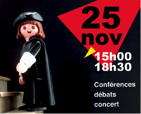 Vous êtes donc tous invités à venir le samedi 25 novembre prochain à deux conférences-débats animées par François Clavairoly, président de la Fédération protestante de France, Luther et la naissance de la Réforme, et Luther et l’actualité de la Réforme. Elles seront entrecoupées d’une prestation musicale (musique de la Réforme) assurée par la chorale Dilettante et précédées d’un repas paroissial, auquel, bien sûr, vous êtes tous conviés !