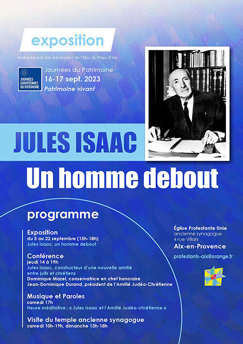 Exposition « Jules Isaac, un homme debout », Du 5 au 22 septembre 2023 (15h-18h), une exposition à visiter dans le temple d’Aix-en-Provence, 4 rue Villar