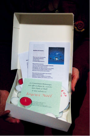 Ce qu’il y a dans une Christmasbox ? Des bougies dont quatre rouges, un livret avec des textes et des passages de la Bible sur Noël, un CD de chants, des idées de bricolage…