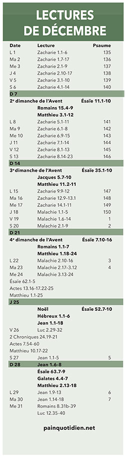 Listes de lectures quotidiennes de la Bible avec Pain Quotidien (novembre et décembre 2025)