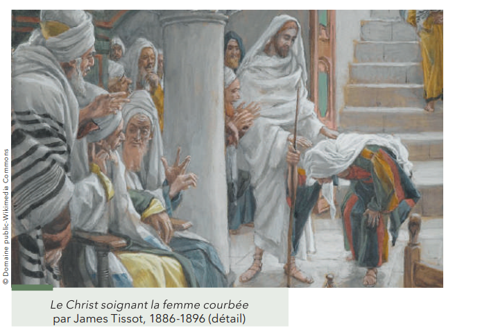 Jésus entre dans la synagogue, et déjà, au sein du peuple, cette femme courbée : il la voit. Il la voit en vérité : une force, en elle, l’oblige à s’incliner, à s’abaisser. Elle le fait par faiblesse, depuis le temps d’une longue oppression, dix-huit ans, telles celles que le peuple d’Israël a connues par deux fois au temps lointain des Juges, quand les enfants d’Israël s’étaient pervertis en servant, soumis, les dieux des païens. Dix-huit ans d’abaissement. De servitude. Et elle n’est pas seulement courbée, la langue du récit en dit plus, elle est obligée de le faire. Elle a été obligée de s’incliner, de s’abaisser. Elle est assujettie. Jésus le verra et le dira.