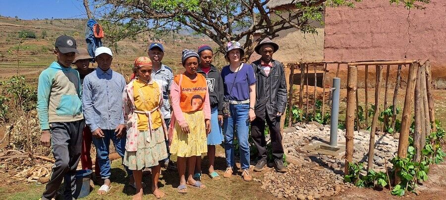 avec des villageois recevant de l’eau potable – © DR